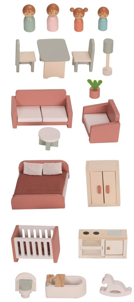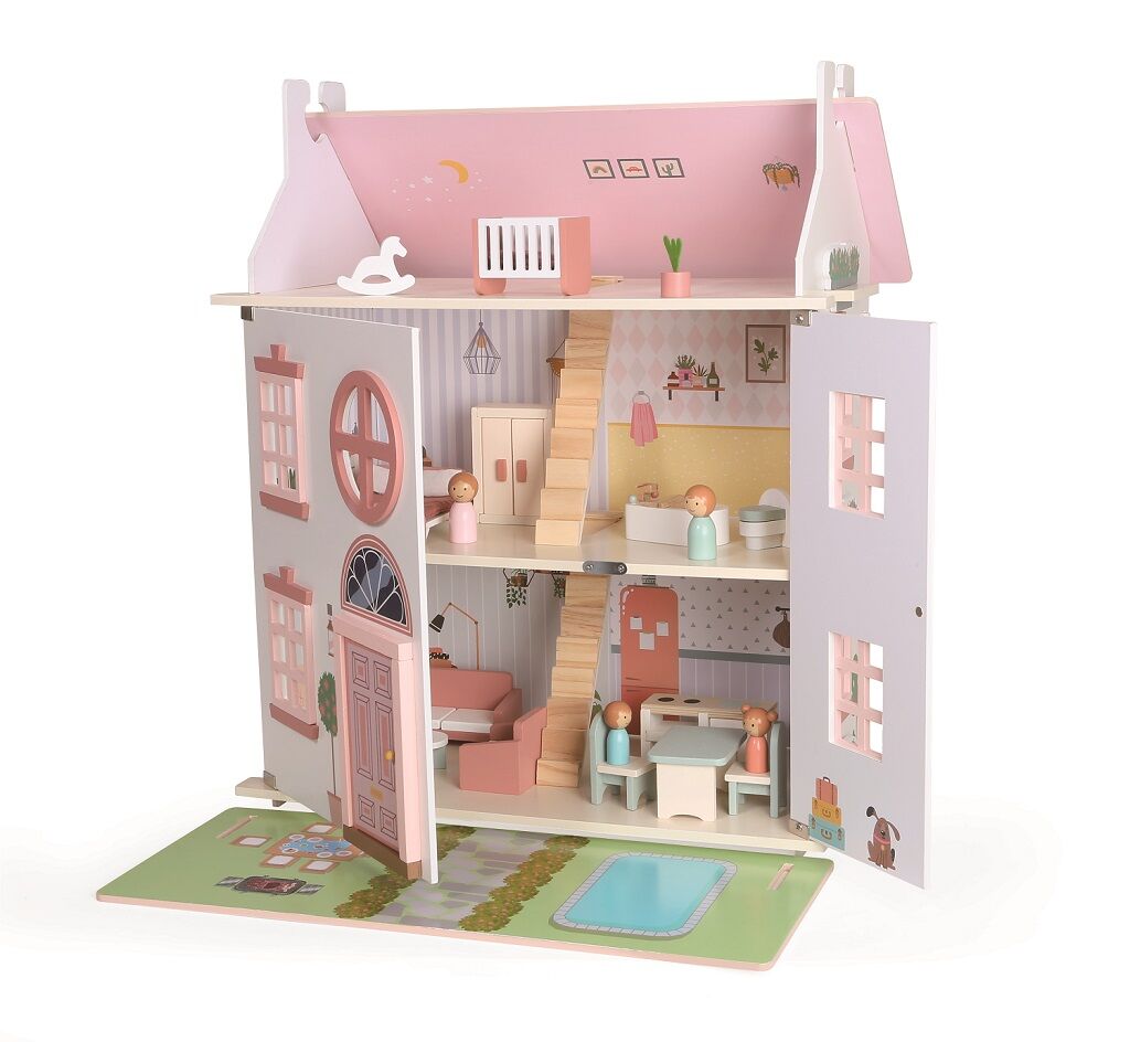 Vítejte v domečku! Na místě, kde příběhy čekají jen na Vás. Díky třem patrům a bohatě prostorným pokojům je pro Vaše malé panenky naprosto ideální. Spolu s rodinkou zde najdete vše, co je u moderní domácnosti zapotřebí – kuchyň, koupelnu, ložnici, obývák i dětský pokoj v podkroví. Sundejte přední část střechy, otočte jí a položte před otevřený domeček a hned máte pro panenky i zahradu s bazénem a nábytkem. Tvořte si rodinné příběhy dle vlastní fantazie! Při hraní děti procvičují komunikační dovednosti, prohlubují sociální interakce a využívají kreativitu
