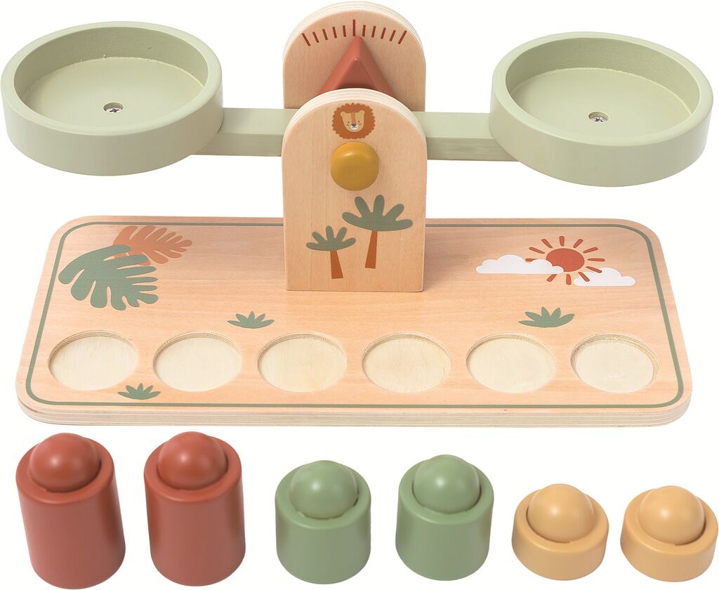 Barevná dětská misková váha v pastelových barvách s motivem safari je skvělou pomůckou pro první objevování světa vážení a porovnávání. Je Inspirována Montessori pedagogikou a podporuje rozvoj logického myšlení a jemné motoriky. Díky šesti závažím o třech různých hmotnostech (vždy po dvou kusech) se děti učí poznávat rozdíly v hmotnosti a samy zkoumají, který předmět je těžší či lehčí. Je těžší plyšák nebo panenka? Porovnávejte hmotnosti hraček v dětském pokojíčku nebo drobných předmětů v domácnosti. Váha je ideální pro hravé učení doma i ve školce.