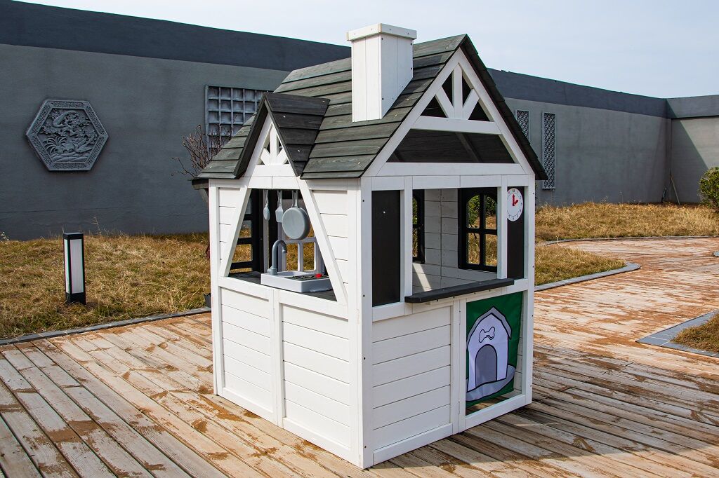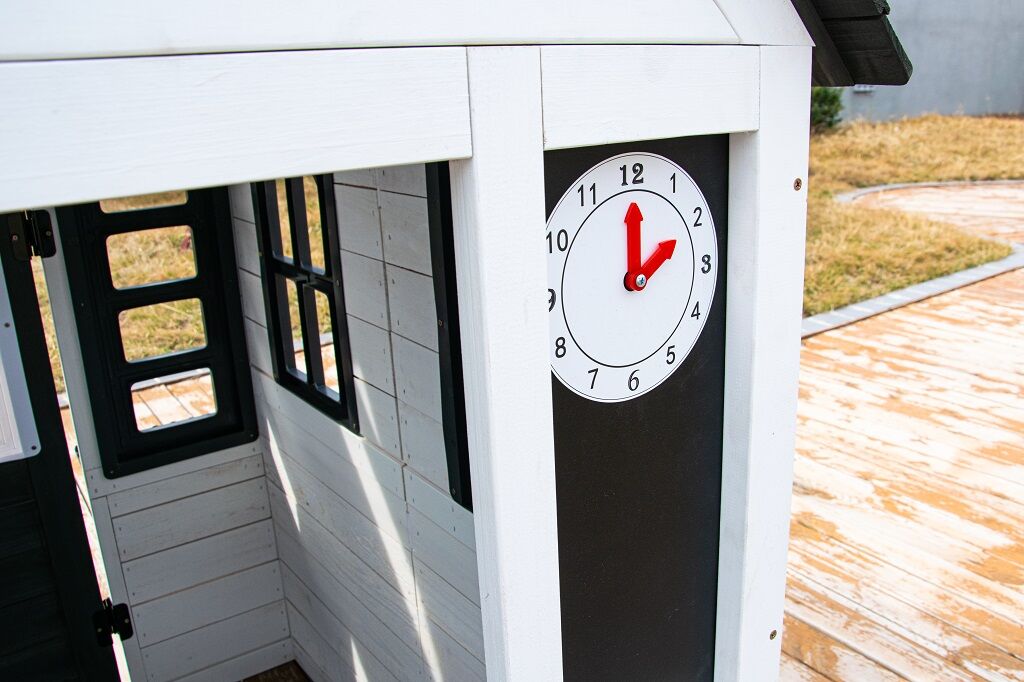 Kdo by netoužil po svém vlastním bydlení! Dopřejte svým dětem klidný kout, kde můžou odpočívat, mít soukromí a nerušeně si hrát. V tomto rozkošném domečku se budou cítit jako v pohádce. Velké boční okno nabízí krásný výhled do okolí a umožní proměnit domeček v prodejní stánek nebo obchod. V útulné kuchyňce, ve které nechybí varná deska s otočným červeným knoflíkem, dřez a základní nádobí, předvedou malí kuchaři a kuchařky své kulinářské dovednosti a připraví pro kamarády nebo rodiče chutné menu. Dalšími stylovými doplňky jsou hodiny, truhlíky po stranách vstupních dveří, ve kterých se budou krásně vyjímat květiny, praktický vstup pro pejska, který je překryt látkovým závěsem s motivem psí boudy. Domeček je vyroben ze dřeva a opatřen nátěrem v přírodních barvách. Bude skvělým doplňkem a ozdobou každé zahrady nebo menšího venkovního prostoru. Tak na co ještě čekáte? Zazvoňte na zvonek a pojďte dál! K napájení zvonku slouží 3 baterie LR44, které nejsou součástí balení. Dodáváno v rozloženém stavu s podrobným návodem na sestavení.