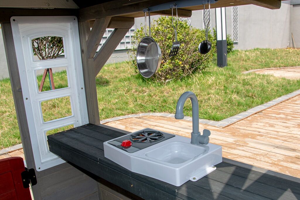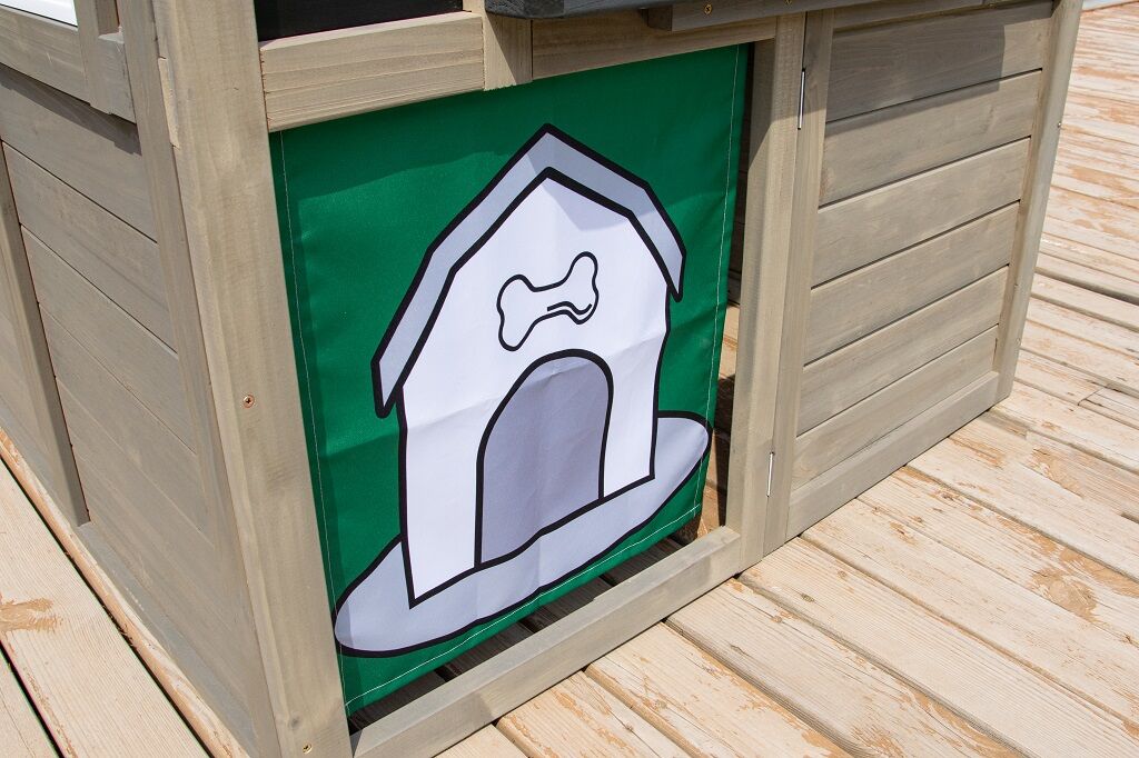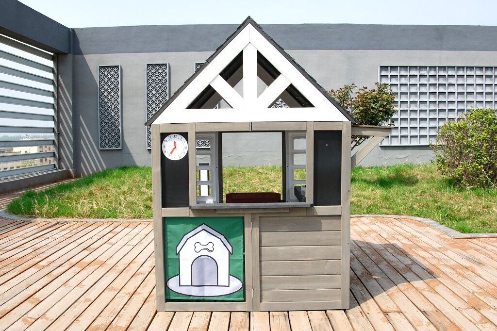 Kdo by netoužil po svém vlastním bydlení! Dopřejte svým dětem klidný kout, kde můžou odpočívat, mít soukromí a nerušeně si hrát. V tomto rozkošném domečku se budou cítit jako v pohádce. Velké boční okno nabízí krásný výhled do okolí a umožní proměnit domeček v prodejní stánek nebo obchod. V útulné kuchyňce, ve které nechybí varná deska s otočným červeným knoflíkem, dřez a základní nádobí, předvedou malí kuchaři a kuchařky své kulinářské dovednosti a připraví pro kamarády nebo rodiče chutné menu. Dalšími stylovými doplňky jsou hodiny, truhlíky po stranách vstupních dveří, ve kterých se budou krásně vyjímat květiny, praktický vstup pro pejska, který je překryt látkovým závěsem s motivem psí boudy. Domeček je vyroben ze dřeva a opatřen nátěrem v přírodních barvách. Bude skvělým doplňkem a ozdobou každé zahrady nebo menšího venkovního prostoru. Tak na co ještě čekáte? Pojďte dál a buďte tady jako doma!