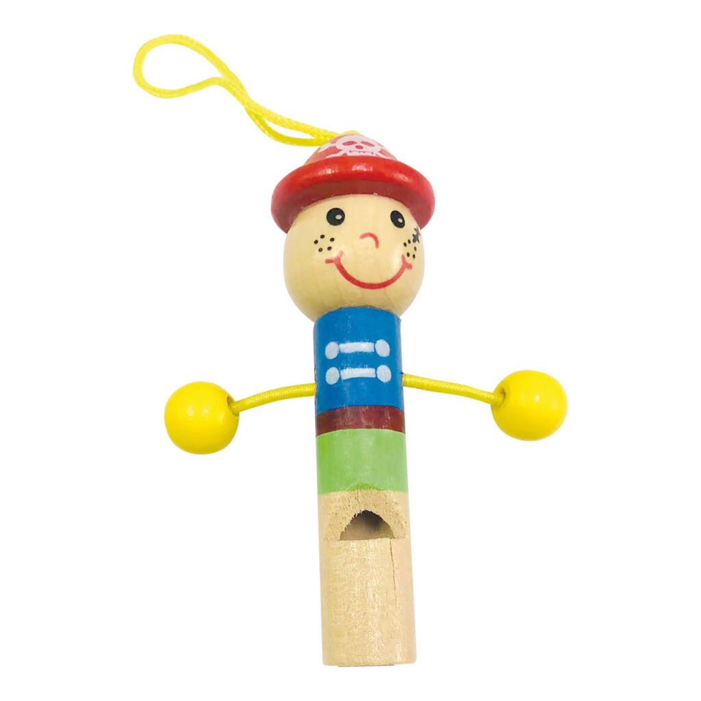 Barevné dřevěné píšťalky s veselými postavičkami a praktickým poutkem na zavěšení podporují rozvoj dětského sluchu. Vyluzují příjemný hlasitý zvuk, jsou proto vhodné také jako fotbalové, nebo signální píšťalky. Potěší jako drobný dárek k mnoha příležitostem! Vyrobeno z masivního dřeva a nalakováno nezávadnými barvami.