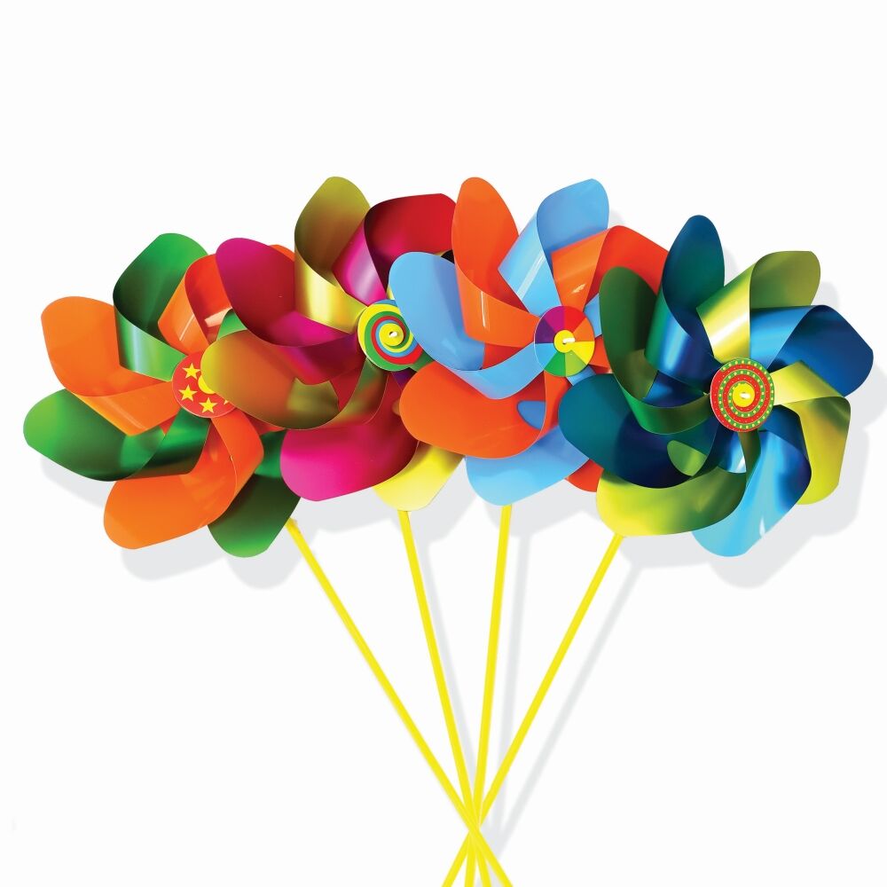 Velký větrník (mix barev) pro radost dětí, vykouzlí úsměv na každé dětské tváři. Vhodný pro hru na doma i jako dekorace na zahradu nebo do květináče. Vylepšená kvalitní konstrukce pro dlouhodobou funkčnost. Hřídelka je opatřena dodatečným trubičkovým pouzdrem, které zajistí dlouhotrvající funkci otáčení na velmi dlouhou dobu. Větrník je vyroben v EU. Celková délka s tyčí dosahuje 50 cm.
