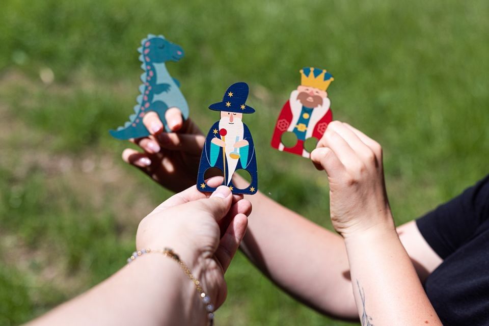 Ponořte se s dětmi do světa příběhů a fantazie. Přeneste se do světa hodných kouzelníků, mocných králů a zlých draků. Vyberte si svou oblíbenou postavičku, nasaďte si loutku na prsty a pusťte se do vyprávění příběhu. Můžete být hercem i režisérem v neuvěřitelných dobrodružstvích, které si sami vymyslíte. Každý dílek splňuje přísné bezpečnostní normy, je pomalován pro děti nezávadnými barvami a má certifikaci CE, což zaručuje bezpečnost a vhodnost pro použití dětmi od tří let.