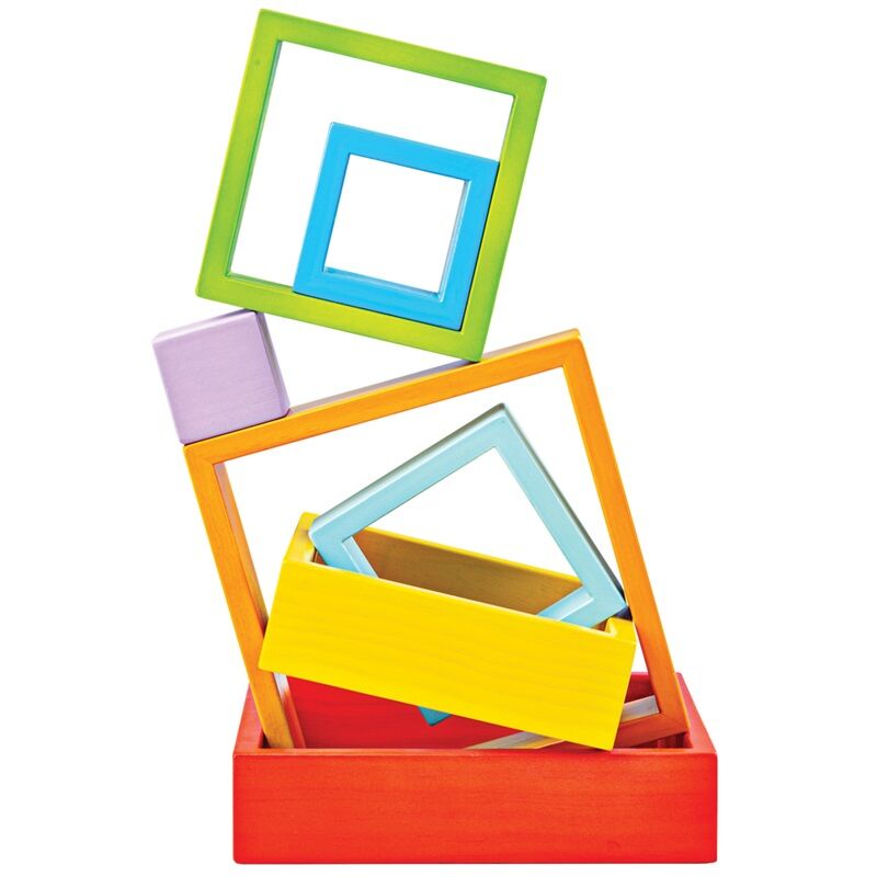Skládací a všestranná hra s nekonečnými možnostmi a kombinacemi. Nenajdete zde žádný návod ani doporučení, můžete skládat zcela dle představivosti. Děti se při hře také naučí rozeznávat barvy a tvary. Vyrobeno z pevného dřeva, barveno netoxickými barvami. Až si děti dohrají, mohou si barevnými čtvercemi vyzdobit pokojíček. Podporuje rozvoj kreativity, zručnosti a prostorové představivosti. Vyrobeno z kvalitních materiálů ze zodpovědných zdrojů. Splňuje evropské bezpečnostní standardy.