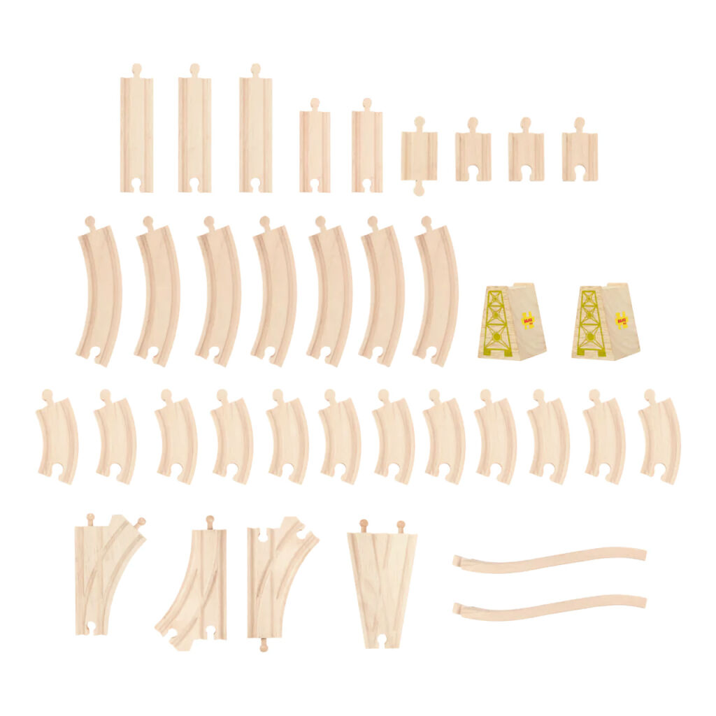 - vláčkodráhy a jejich příslušenství značky Bigjigs Rail lze kombinovat se všemi ostatními dřevěnými železničními drahami na trhu