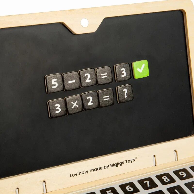 Počítejte, pište, čtěte a učte se hrou s dřevěným notebookem! Na magnetické obrazovce notebooku si děti mohou pomocí magnetických písmen, číslic a symbolů sestavovat slova či procvičovat matematiku. Anebo psát na tabuli křídou, kterou snadno odstraní pomoci myši s gumou. Děti si mohou notebook ozdobit pomocí přiložené sady samolepek a na cestování vložit do praktického pouzdra. Počítačové hračky bez obrazovky jsou pro děti přátelským a interaktivním způsobem, jak se naučit rozeznávat písmena a čísla a zároveň je zapojit do imaginativní hry. Používání tabule a magnetických číslic, písmen a symbolů také pomůže zlepšit jejich jemnou motoriku. Notebook je vyroben z vysoce kvalitního a udržitelného dřeva s certifikací FSC® a nabarven netoxickými barvami a laky. Splňuje aktuální evropské bezpečnostní normy.