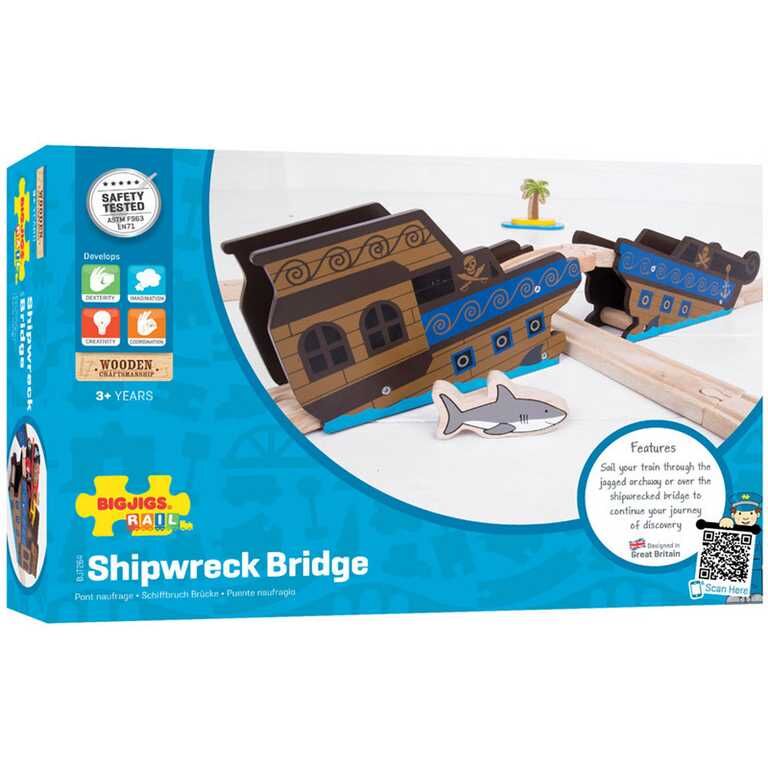 Posuňte svou dřevěnou železnici na další úroveň s tímto úžasným doplňkem. Tunel a most v jednom se skládá ze dvou dílů. Žralok není součástí balení.