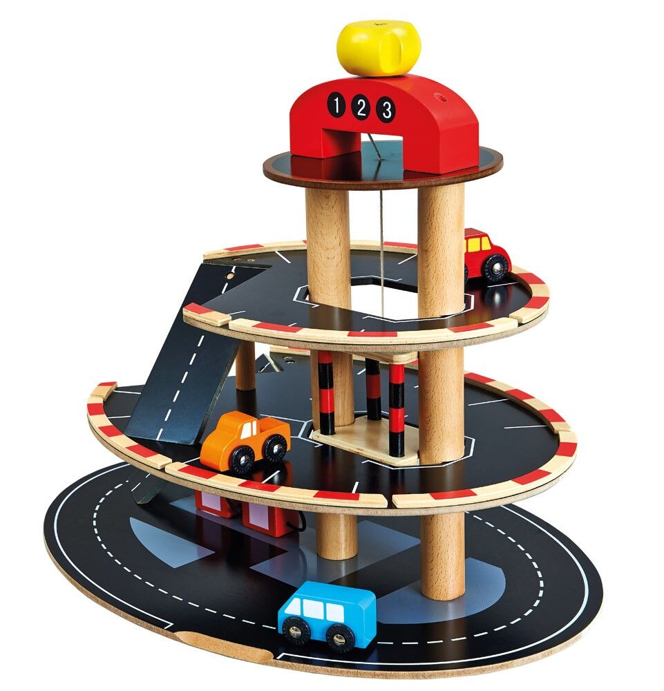 Nechte Vašeho malého motoristu parkovat na dvoupodlažním parkovišti s několika barevnými autíčky. Garáž je vybavena také jednoduchým výtahem.