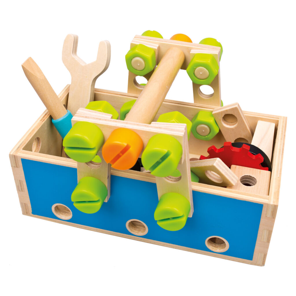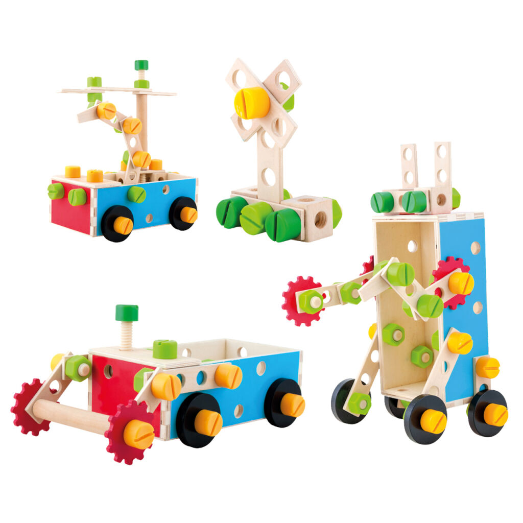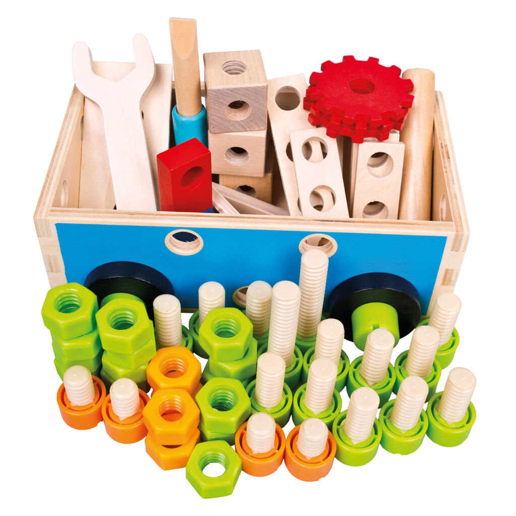Stavebnice ideální pro všechny malé kutily a opraváře. Pomocí šroubováku, klíče, šroubků a matiček lze stavět podle předloh, nebo dle vlastní fantazie. Souprava pomáhá dětem budovat vztah k řemeslné práci a rozvíjet logiku, trpělivost a jemnou motoriku. Hračka nabízí robustní design bez ostrých hran, s jasnými výraznými barvami. Je velmi praktická, lze ji snadno uskladnit a přenášet.