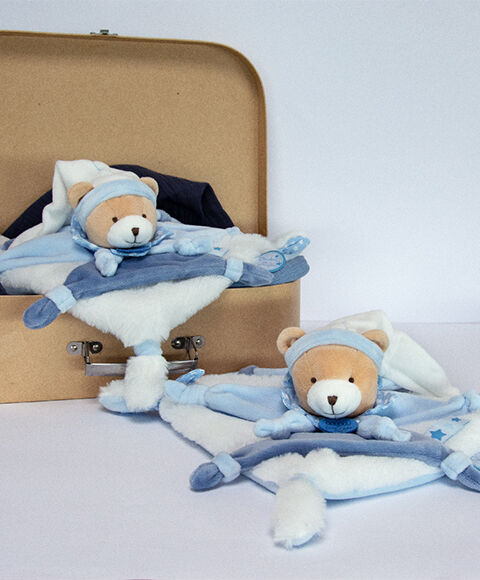 Plyšový muchláček doprovází miminko od narození, aby mu přinesl hebkost, pohodlí a objetí. Ultra jemná a uklidňující je strana se svěžím bavlněným potiskem, rozvíjí smysly a zvědavost. Velmi pěkný dárek k Vánocům nebo k oslavě narození miminka. Prezentováno v pěkně ladící krabičce.