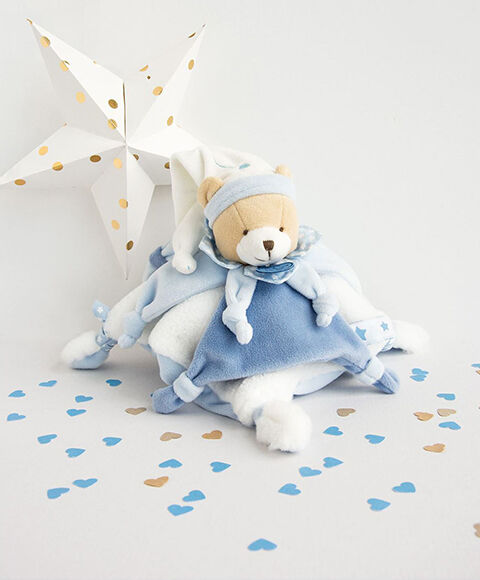 Doudou Dárková sada - plyšový medvídek muchláček s čepičkou