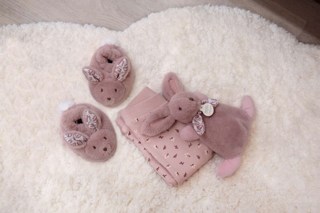 Doudou Dárková sada růžová Plyšový zajíček a botičky