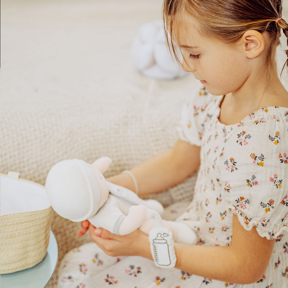 Panenka Pol v přenosné tašce do kočárku jako opravdové miminko! Tato panenka s čepičkou a ponožkami je měkoučká a heboučká pro každé ručky. Pol má navíc bílo-šedý obleček, který je možný panence sundávat a zase oblékat a v ruce drží svou malou lahvičku. Díky přenosné kočárkové tašce je panenka Pol skvělou parťačkou nejen na doma, ale i na výlet do parku či k přátelům. S toutou panenkou jsou hodiny hraní zajištěny. Údržba: Perte v lázni na 30°. Doporučení: Přirozené nebo nízkoteplotní sušení. Hračka splňuje evropské bezpečností CE normy.