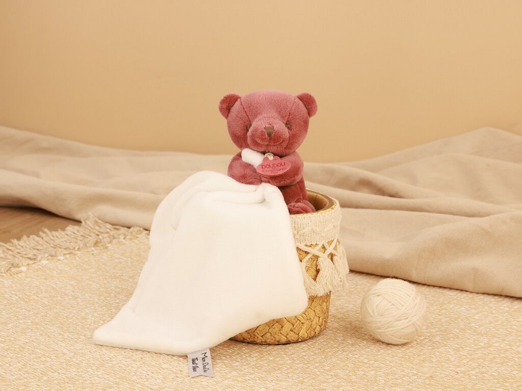 Malý roztomilý medvídek s dečkou je vždy připraven vnést do života dítěte něžnost. Vyberte svému dítku vzácného společníka, který ho bude doprovázet při jeho dobrodružstvích ve dne i v noci. Tento malý plyšový medvídek doprovází miminko od narození, aby mu přinesl hebkost, pohodlí a objetí. Pro miminko bude mít především uklidňující efekt. Rozvíjí smysly a zvědavost. K dispozici je v 8 jemných barvách. Hračka je extrémně měkká a je dodávána v pěkně ladící krabičce. Spodní část krabičky je možno rozložit do tvaru květu, můžete tak medvídkovi udělat postýlku a přikrýt ho jeho dečkou. Nebo dejte do květu medvídka na dečku sednout a plyšáček se tak stane velmi pěknou dekorací každého prostoru.
