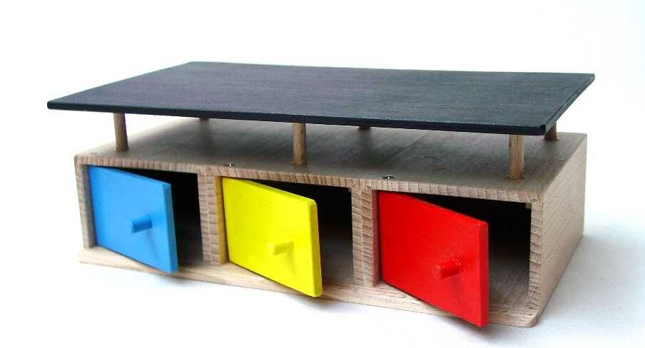 Garáže pro autíčka. To je něco pro kluky! A zrovna 3 najednou ...Vhodné pro autíčka do rozměru 10 x 5 cm.
