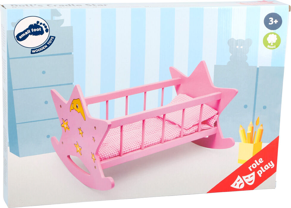 Pozor všichni pozorovatelé hvězd. S touto skvělou kolébkou pro panenky z robustního dřeva se děti s panenkami houpají do svých snů. Přední a zadní část kolébky má design hvězdné oblohy.