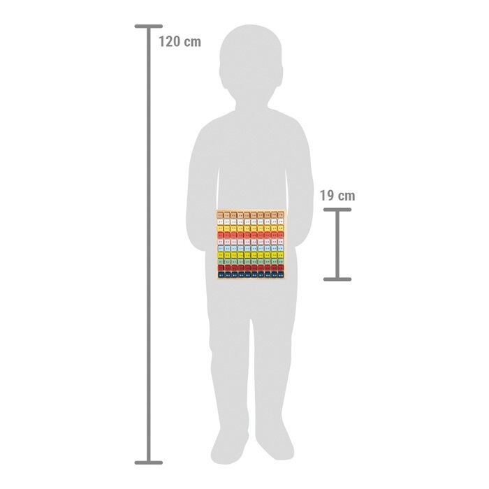 Barevná zábava s počty! Tato hra děti podpoří v procvičování násobení. Pomůcka je vyrobená z robustního 100% FSC® certifikovaného dřeva, je barevná a odolná. Děti uvede do světa násobků čísel. Kolik je 3x3?