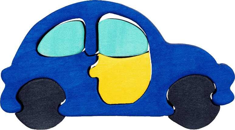 Fauna Dřevěné vkládací puzzle z masivu malé auto modré