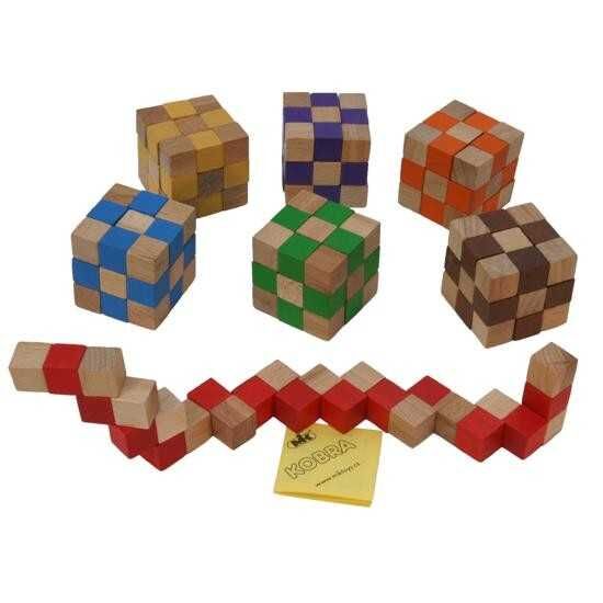 Dřevěný hlavolam kostka modrá. Skvělá hra, která pomáhá rozvíjet strategickou mysl. Ideální pro interaktivní hraní. V nabídce je 8 barevných provedení s rozdílnými obtížnostmi seřazenými od nejlehčí po nejsložitější. Čím tmavší barvu hlavolam má, tím je složitější.