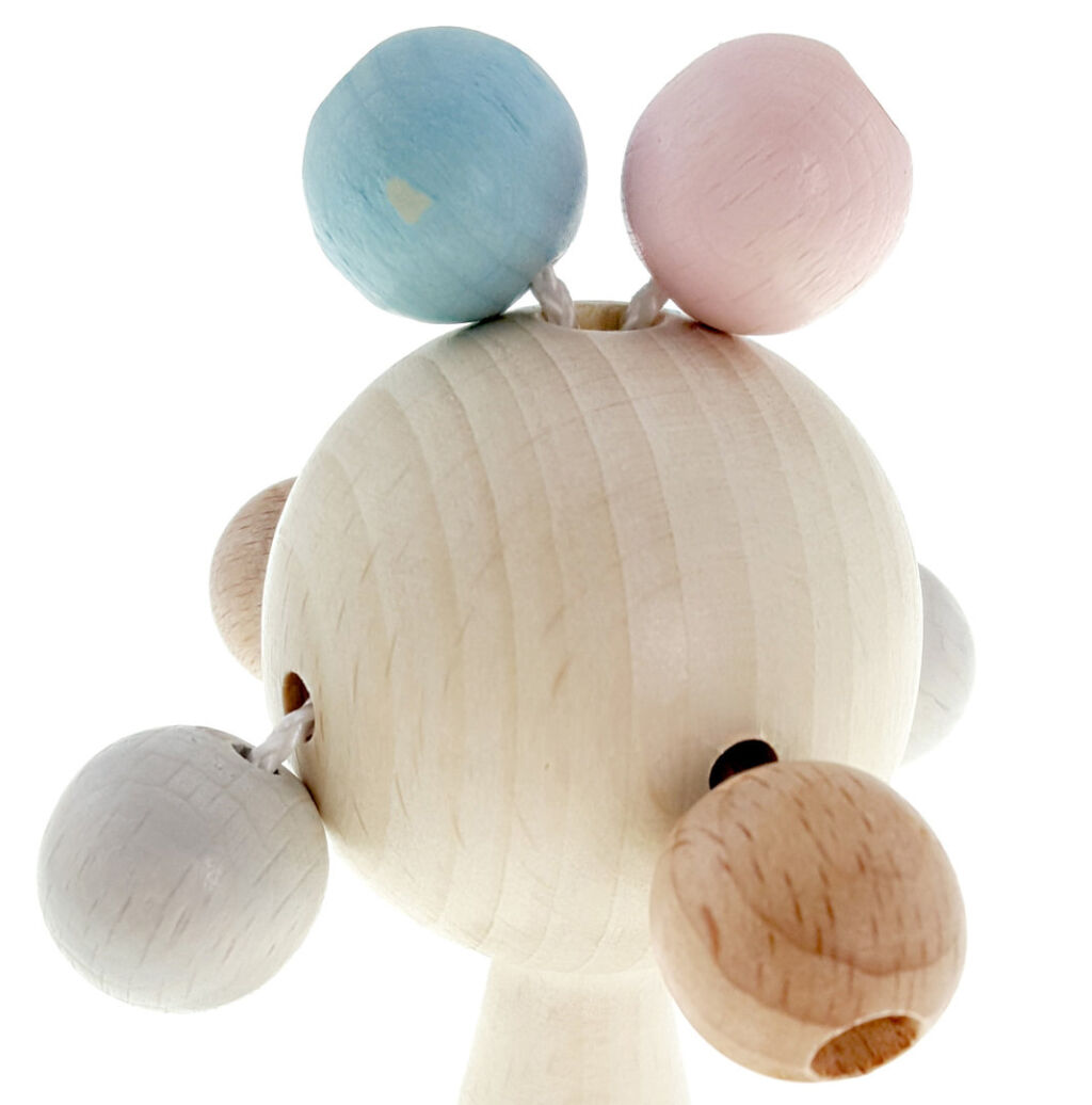 Vysoce kvalitní dřevěná hračka stimuluje představivost a zaujme pastelovými barvami. Hravou formou trénuje jemnou motoriku dítěte. Chcete-li si ji užít po dlouhou dobu, vyvarujte se nadměrného působení vody, čistěte hračku pouze vlhkým hadříkem. Chrastítko nevyvařujte, nedávejte do sterilizátoru ani nepoužívejte jiné sterilizační metody.