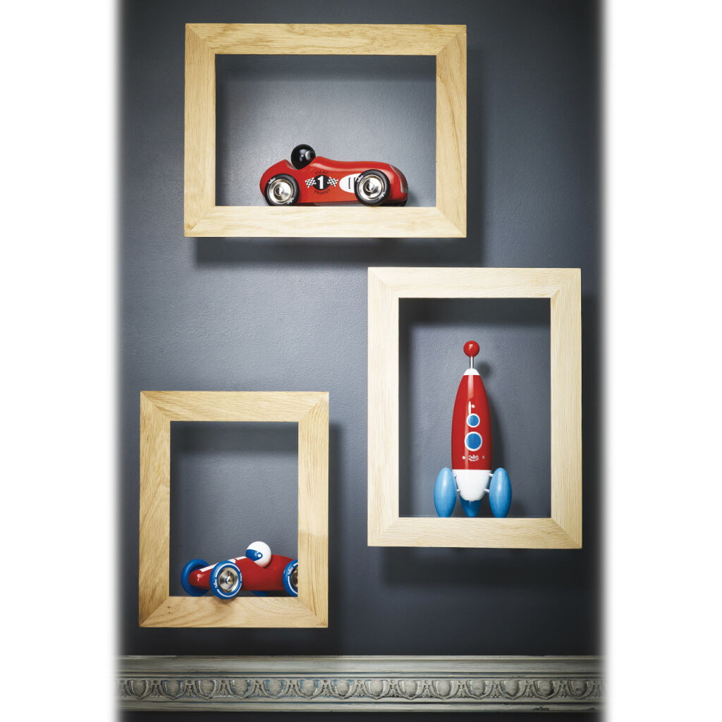 Červené vintage závodní auto vyrobeno z lakovaného dřeva s kovovými pogumovanými koly. Je vhodné jak ke hraní tak jako dekorace do pokojů dětí či dospělých. Vyrobeno ve Francii.