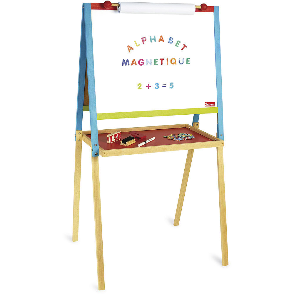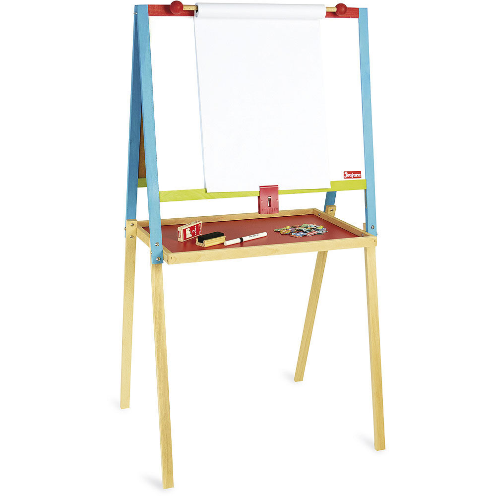 Dvojice tabulí na rozkročené dřevěné konstrukci vybavené velkým odkládacím či úložným prostorem. Na černou tabuli se píše a kreslí křídou, bílou tabuli lze popisovat zvlášť určenými fixy a mazat plstěnou houbičkou. Součástí výbavy je také držák na role papíru, které jsou dodávány zvlášť jako příslušenství. Vyrobeno ve Francii, z masivního bukového a borovicového dřeva francouzského původu. Součásti jsou ošetřeny výhradně za použití barev a laků na bázi vody. Baleno v kartonu potištěném rostlinnými inkousty. Součástí balení jsou křídy, fix, houbička, sada vzorovaných magnetických písmen, kolíček a role papíru.