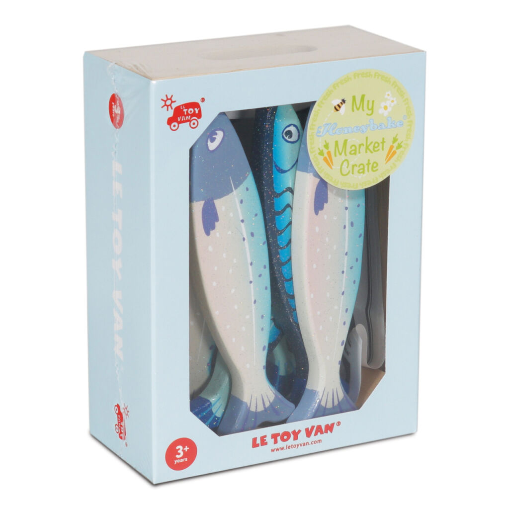 Bedýnka s rybami je perfektní pro hru na role. Najdete v ní několik druhů ryb. Děti se díky hračce naučí o rozdílných potravinách a důležitosti vyvážené stravy. Vyrobeno z pevného a udržitelného dřeva, malováno netoxickými barvami, velikost tak akorát pro malé dětské ruce. Hračka pomůže při rozvoji koordinace a jemné motoriky. Ideální doplněk dětských prodejních stánků a kuchyněk.