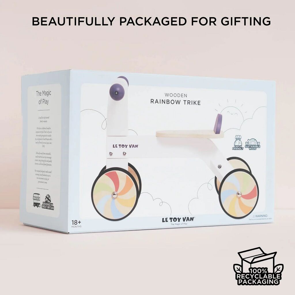 Stylová jízda pro malé objevitele.Toto krásně navržené odrážedlo je vyrobeno eticky z udržitelného FSC® dřeva. Zaujme svým elegantním barevným provedením a kolečky v barvě duhy. Díky pohodlnému sedátku a snadno ovladatelným řídítkům je ideální pro první samostatné projížďky malých dětí. Stylový a zábavný dopravní prostředek, který podporuje aktivní pohyb a zároveň pomáhá rozvíjet rovnováhu a koordinaci.