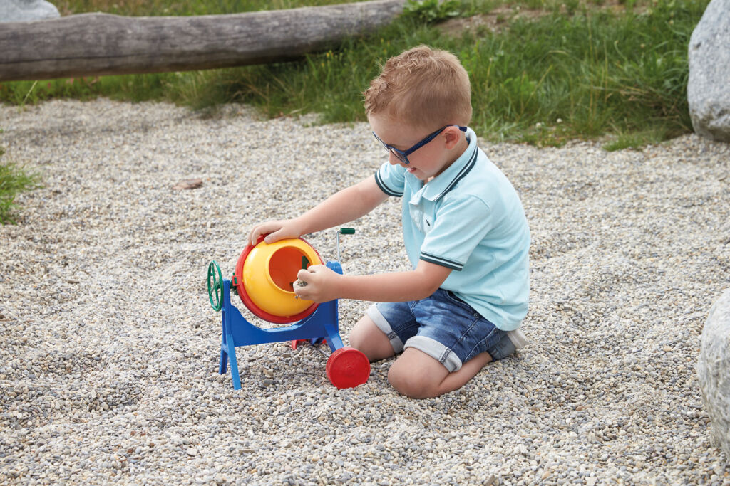 Plastová barevná míchačka. Míchačka je skvělá hračka pro malé stavitele na pískoviště či zahradu. Míchačka je plně funkční. Bubnem míchačky lze otáčet pomocí postranní kliky. Dětská míchačka je vyrobena z kvalitního nezávadného plastu s vysokou odolností proti poškození.