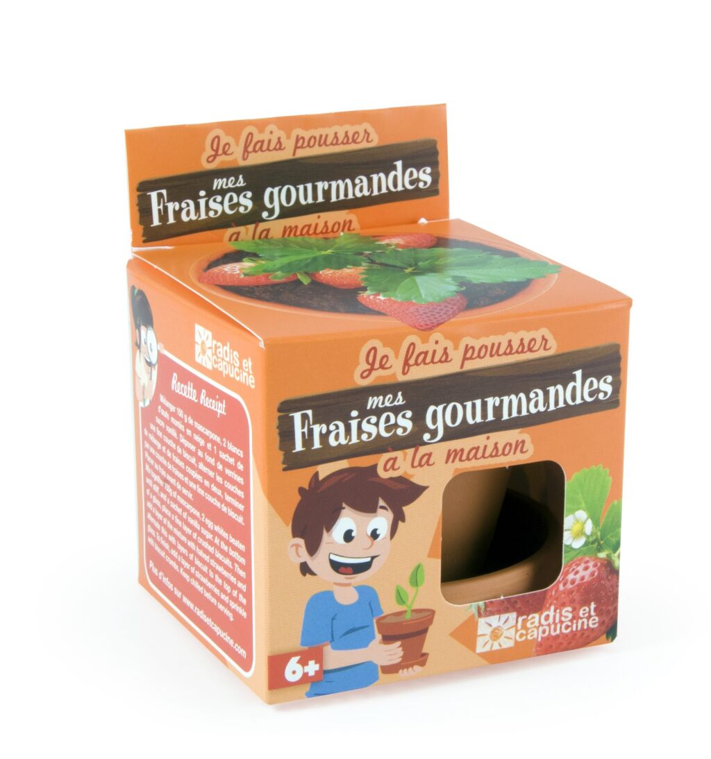 Obsahuje:květináč (Ø8 cm), miska (Ø8 cm), semena jahod