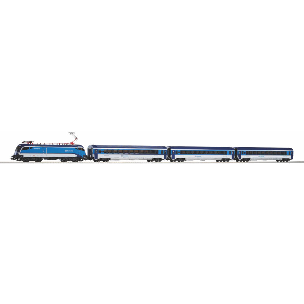 Startovací sada skládající se z elektrické lokomotivy Taurus, třech osobních vozů 2. třídy, prodlouženého oválu a analogového ovládání s napájením. Lokomotivu lze dovybavit digitálním dekodérem. Nabízí se také další vagony odpovídajícího typu a úpravy. Koleje s podložím zajišťují vyšší odolnost a životnost při opakovaném rozebírání. Nákup sady je vhodné doplnit o příslušný spotřební materiál.