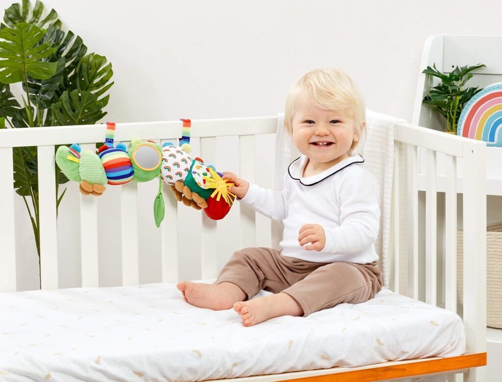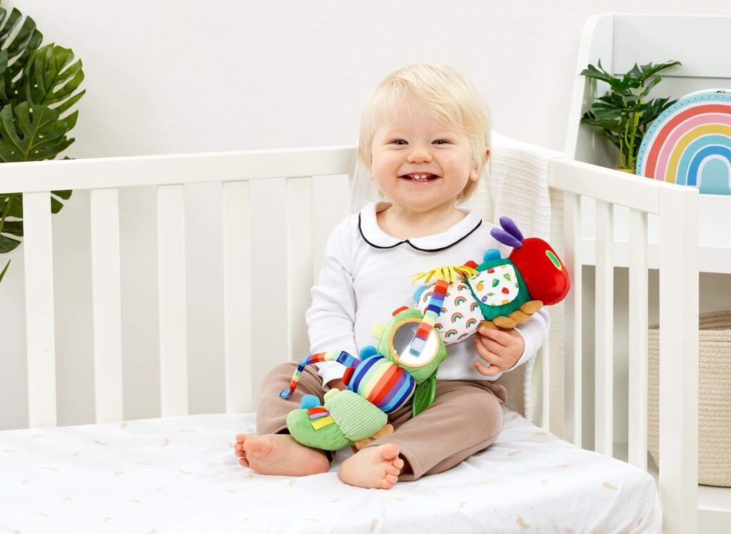 Seznamte se s velmi hladovou housenkou! Tato zábavná, měkoučká a na omak příjemná hračka je vhodná pro miminka od narození a je navržená tak, aby stimulovala dětské smysly a podporovala aktivní hru již v raném dětství. Živé barvy a vzory napomáhají vizuální stimulaci, při prozkoumávání různých materiálů a textur na těle housenky děti zase zapojí hmat a také sluch. Součástí hračky je rovněž zrcátko bezpečné pro děti a kousátko ve tvaru listu. Hračka je doplněna praktickými látkovými poutky pro připevnění k tašce, kočárku či postýlce a skvěle zabaví děti také na cestách. Je ideálním dárkem nejen u příležitosti narození dítěte.