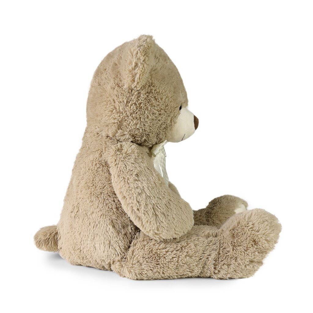Plyšový medvěd by rozhodně neměl chybět v žádném dětském pokojíčku! Medvěd ve velikosti 78 cm je vyroben z kvalitního heboučkého plyše v barvě kapučína a krk mu zdobí krémově bílá saténová mašle. Součástí je papírová visačka ve tvaru srdíčka, na kterou můžete napsat věnování. Tento plyšový kousek je ideálním dárkem pro malé i velké!