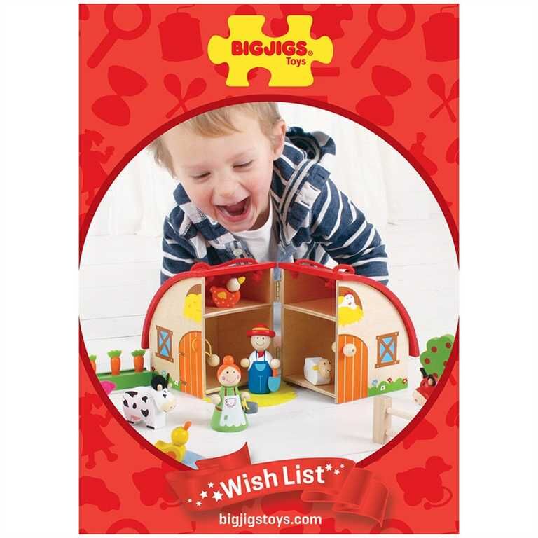 Rozložitelný letáček, ve kterém je vyobrazena část nabídky dřevěných hraček značky Bigjigs. Součástí balení je 25 ks letáčků. Celé balení 25 kusů je určeno pouze velkoobchodním zákazníkům. Maloobchodním zákazníkům můžeme zaslat na ukázku pouze několik kusů.