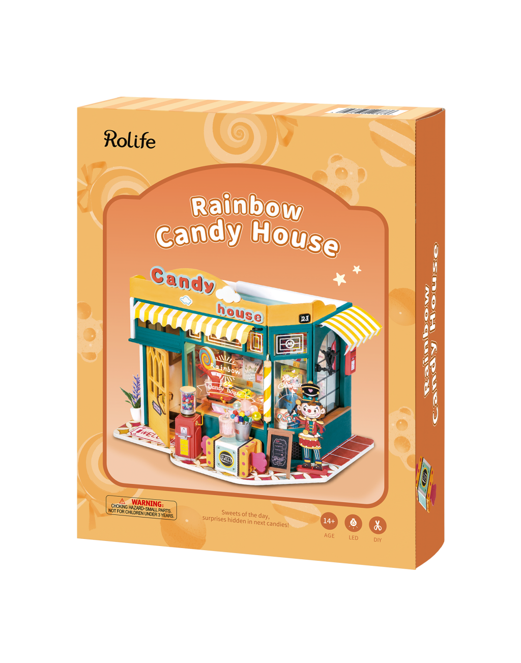 Snadná montáž, která nevyžaduje malování, znamená, že můžete okamžitě začít tvořit. Promyšlený design s průhlednými okny a otevíracími dveřmi vás vtáhne do detailní scény plné pestrých bonbónů a cukrovinek. A když zapnete LED světlo, se tato cukrárna promění v magický svět, který září přesně jako Vaše nejlepší dětské sny. Přidejte si Rolife Rainbow Candy House DIY - 3D miniaturní domeček Cukrárna, DG158, do svého života a zažijte radost z tvorby a sdílení. Ideální jako dárek, nebo jako osobní projekt, kterým si zpříjemníte dlouhé večery. Vytvořte si svůj vlastní cukrovinkový dům plný radosti a barev.
