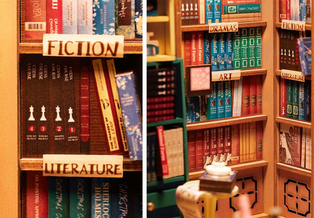 Objevte zázračný svět literatury a retro šarmu s miniaturou domečku knihkupectví, zvaného "Shakespearovo knihkupectví". Představte si, že jste jako starý Tom, věrný zákazník knihkupectví, který se zamiloval do kouzla tohoto jedinečného místa. Každý kousek, od starobylého barevného okna až po červenou sametovou pohovku, ožívá v naší pečlivě sestavené sadě. Se sadou RoboTime Zarážka na knihy miniatura domečku Knihkupectví si můžete vychutnat potěšení z čtení v klidném a pohodlném prostředí, které jste si sami vytvořili. K dispozici máte 194 kusů materiálů, včetně překližky, MDF desky a papíru, abyste mohli rekonstruovat oblíbené Tomovo knihkupectví. Azurově modré okno, velká sametová pohovka, regály přeplněné knihami a dokonce malá úložná skříňka plná pokladů - vše je zahrnuto v sestavě.