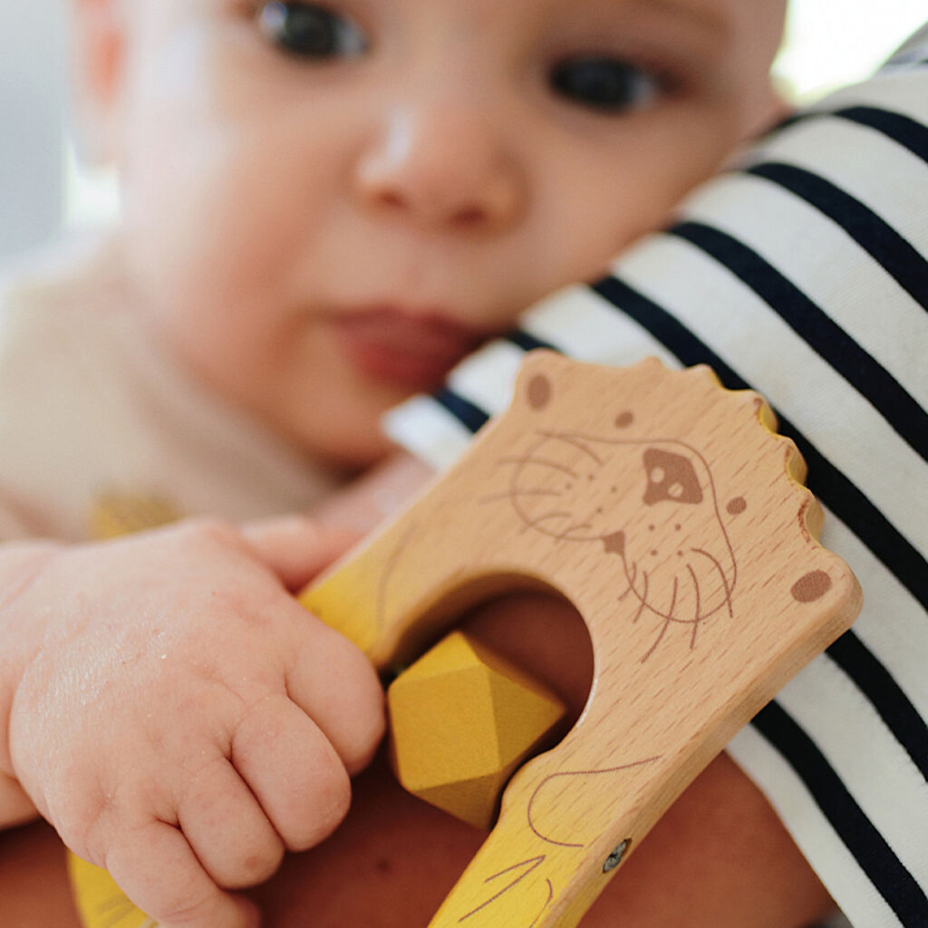 Vysoce kvalitní dřevo a další přírodní materiály, zaoblené hrany a moderní barvy dělají z této sady absolutní poutač. Nezbytná součást vašeho sortimentu hraček pro miminko.