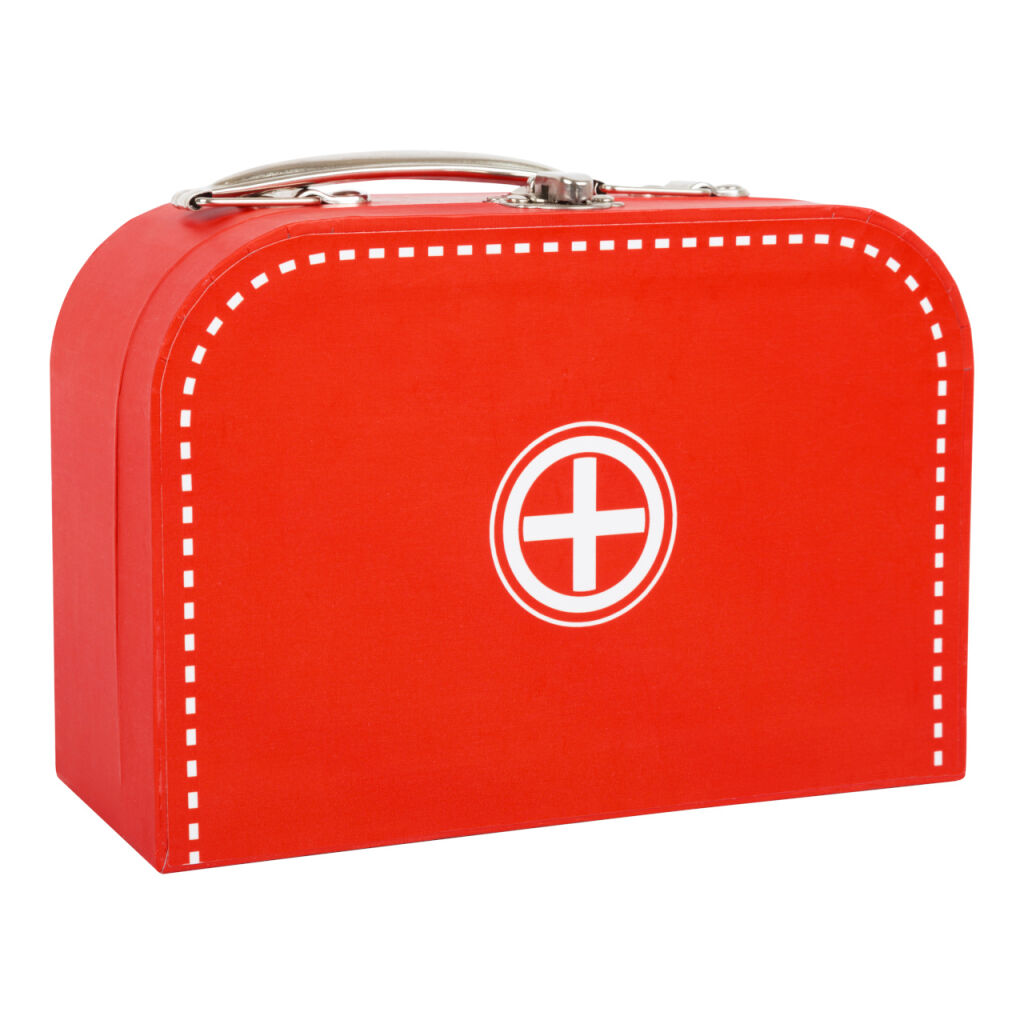 O zdraví panenek a plyšáků bude s doktorským kufříkem dobře postaráno! Obsahuje všechny důležité nástroje a pomůcky. Injekční stříkačka je vybavena pohyblivým pístem, aby hra byla uvěřitelná a děti se mohly cítit jako skuteční lékaři. Pevný a skladný kufřík je vybaven odolným kovovým zavíráním a uchem. Všechny součásti jsou robustní, vyrobené z masivního dřeva, opatřené zaoblenými hranami a kvalitní, hladkou povrchovou úpravou.