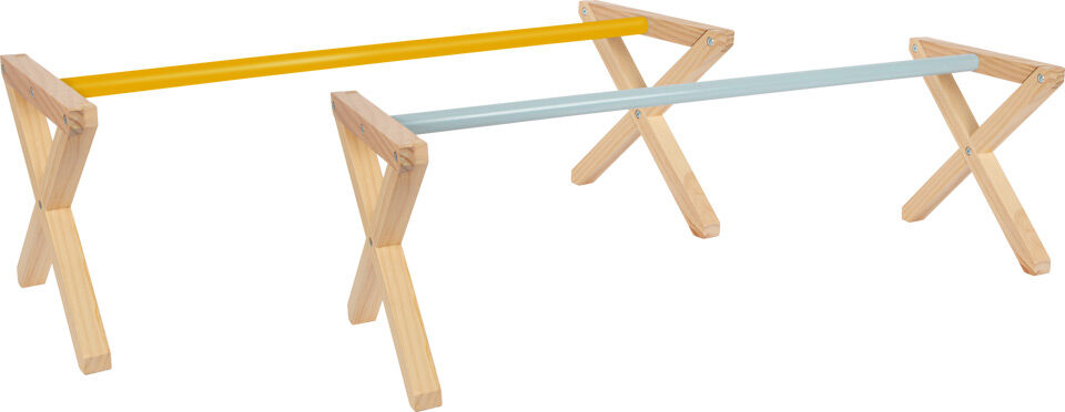 S touto sadou překážek z masivního dřeva si můžete vytvořit vlastní malou skákací dráhu přímo na zahradě nebo v domě! Dva kusy překážek, které jsou postaveny jako skutečné koňské kavalety, lze používat flexibilně - s tyčí v dolní poloze pro malé skoky nebo naskládané na sebe. Hra na "koně" a skákání přes překážky s hobby koníkem jsou oblíbenou zábavou u milovníků koní všech věkových kategorií! Kombinací s Překážkovým setem (LE12398) vytvoříte komplexní cvičební okruh. Tyto překážky z masivního, ale lehkého dřeva se také ideálně hodí pro trénink agility se psy a pro spoustu dalších cvičebních a pohybových her.