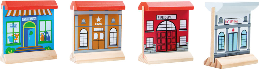 S touto dřevěnou železniční soupravou ožije život na kolejích. Robustní dřevěné koleje a výhybky umožňují vagonům bezpečně dojet do cíle. Krajinu doplňují stromy a různé dřevěné budovy, mosty, postavičky, lokomotivy a vagóny.