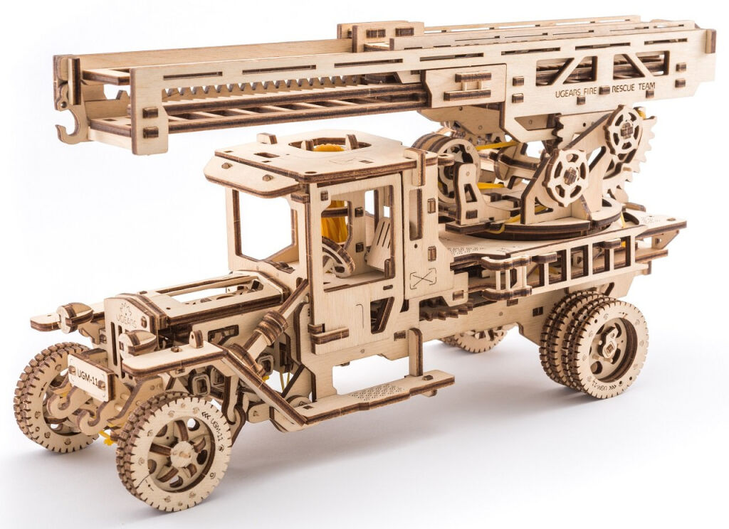 Ugears 3D dřevěné mechanické puzzle UGM-11 Náklaďák s požárním žebříkem