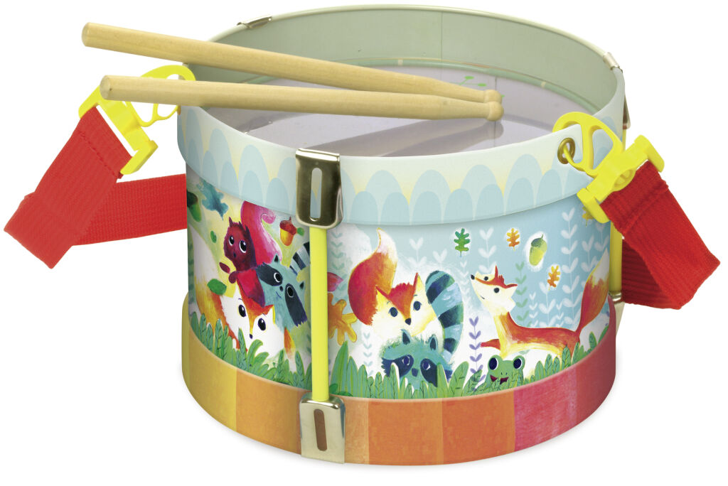 Rozvíjejte hudební talent Vašich dětí s tímto kovovým bubnem. Tento krásný nástroj je ideální pro úvod do světa hudby. Jak buben tak paličky jsou navrhnuty pro malé dětské ruce. Obsahuje nastavitelný popruh pro zavěšení kolem krku. Podporuje kreativitu a představivost, rozvíjí koordinaci ruka-oko, jemnou motoriku a zručnost. Ilustrováno tematikou lesa.