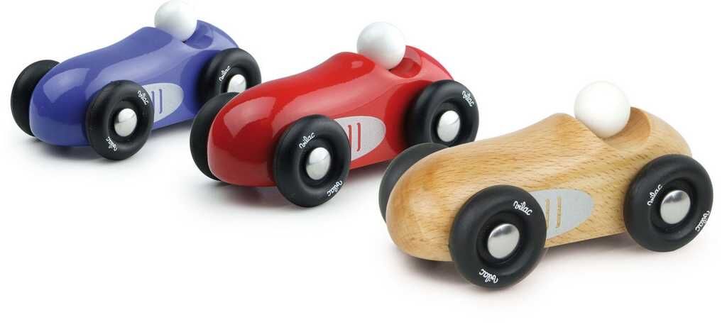 Závodní auto vyrobeno z lakovaného dřeva v přírodní barvě, s masivními gumovými koly. Je vhodné jak ke hraní tak jako dekorace do pokojů dětí či dospělých. Vyrobeno ve Francii.