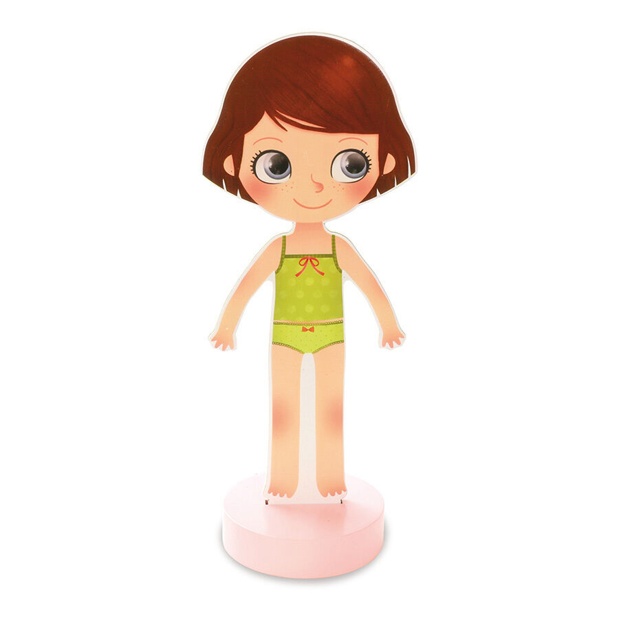 Oblečte Chloe do různých outfitů! Dřevěná, 22 cm vysoká, magnetická panenka s 37 magnetickými dílky oblečení a doplňků.