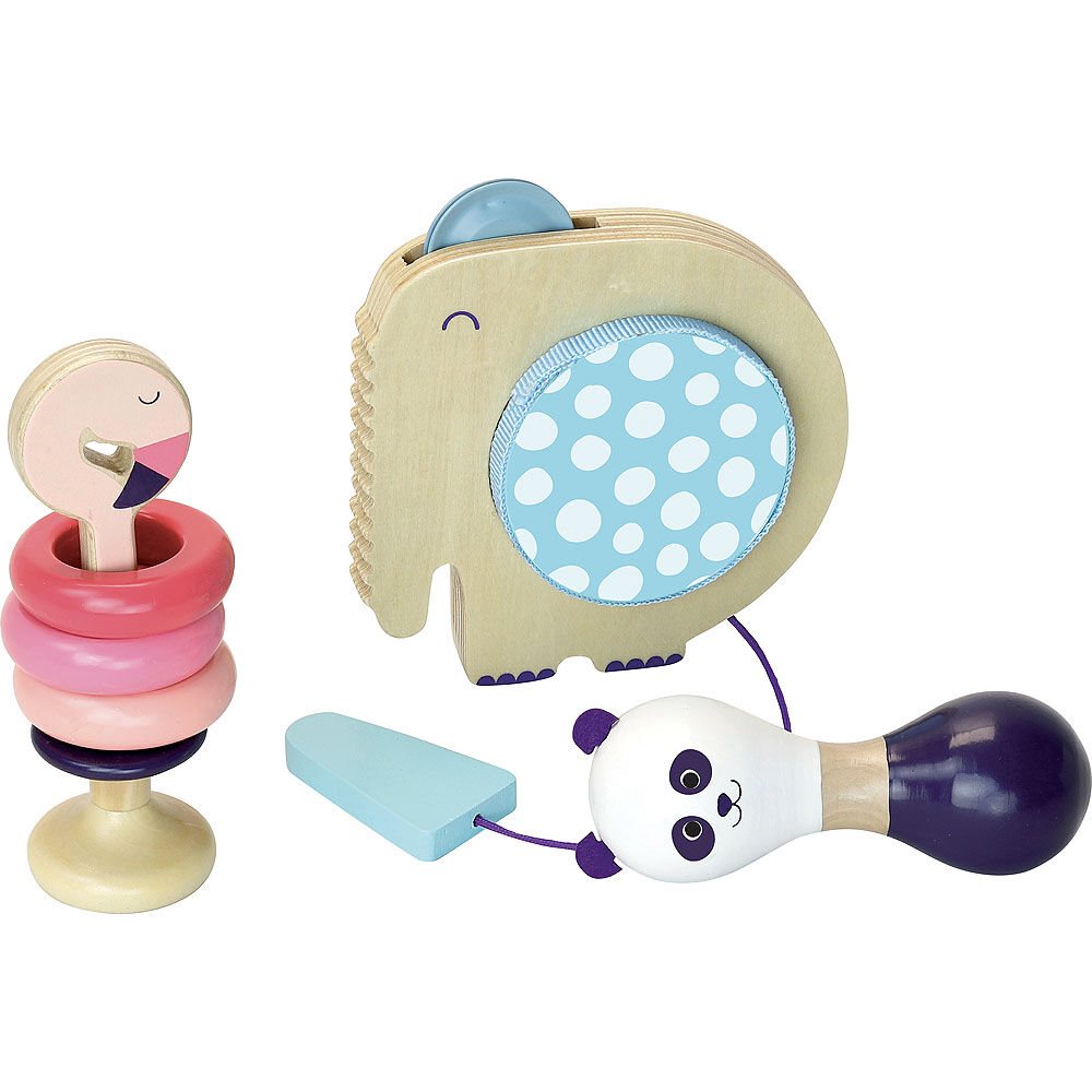 Krásná hudební sada pro nejmenší. Skládá se z barevné rumba koule pandy, sloní tamburíny a chrastítka plameňáka. Vhodné od 12 měsíců.
