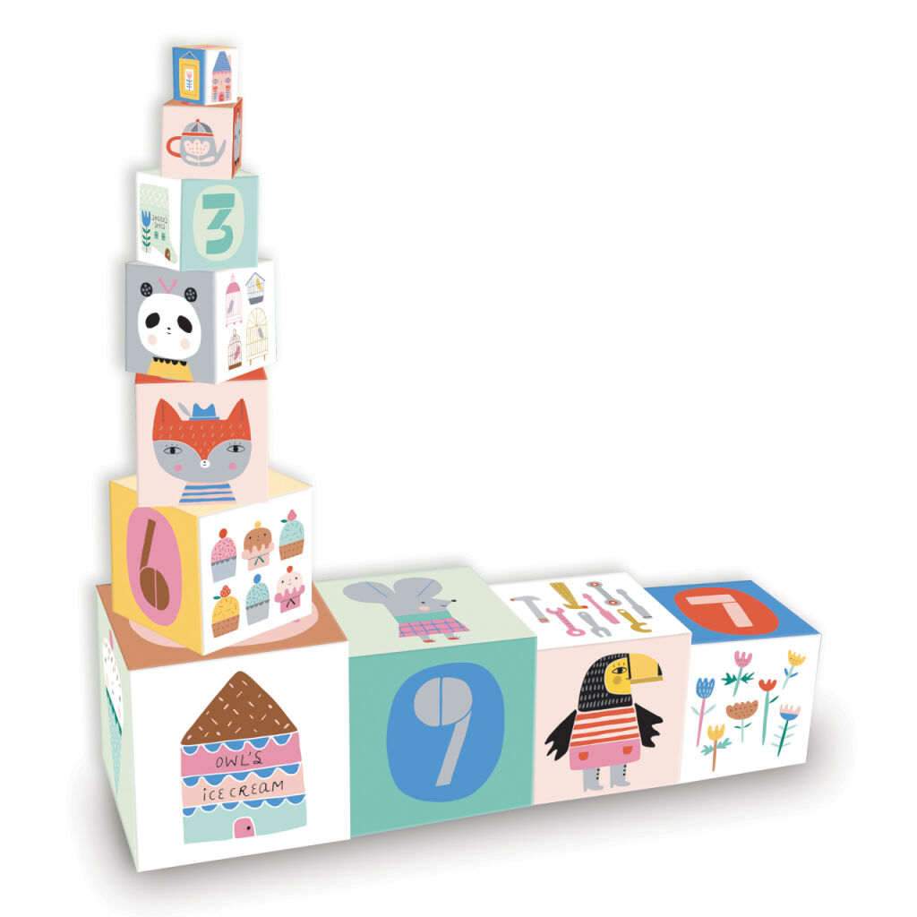 Deset kartonových skládacích kostek s krásnými ilustracemi Suzy Ultman. Děti se při hraní naučí jak skládat kostky, tak rozpoznávat zvířata, barvy a počty. Rozvíjí koordinaci zraku a rukou, a tím celkovou zručnost dětí.
