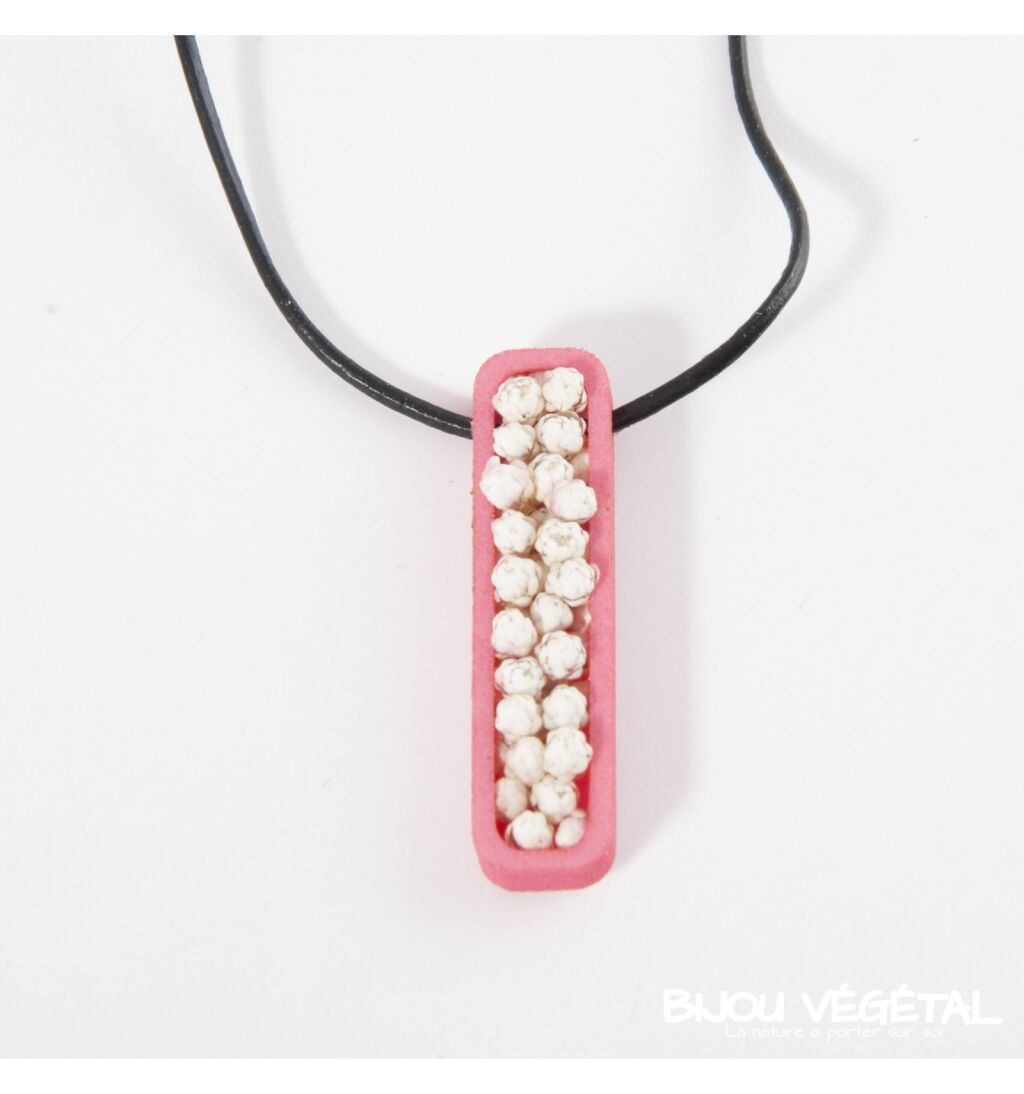 Živé šperky - Náhrdelník Jardiniere růžový s trvalými bílými květy Nádherný módní doplněk ve výrazné barvě v kombinaci s trvalými bílými květy vytváří neobyčejný elegantní živý šperk. Živé šperky jsou stabilizovány patentovanou technologií a nepotřebují prakticky žádnou údržbu. Živé šperky sou baleny v krabičce, součástí balení je náhradní trvalá rostlina. Živé šperky jsou vyrobeny ručně ve Francii. Výrobce garantuje neomezenou životnost, při vhodném používání. Živé šperky nesmí být vystaveny velkým teplotním změnám a přímému proudu vody (při koupání, mytí nádobí apod.) Živé šperky byly poprvé představeny na mezinárodním veletrhu klenotů Bijorhca v Paříži roku 2015. Vytvořily je designové návrhářky a dlouholeté kamarádky Maryse a Manuella pro společnost Radis et Capucine. Živé šperky umožňují stálé propojení s přírodou a přinášejí ji doslova na dosah ruky.
